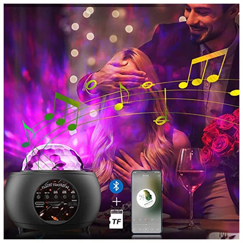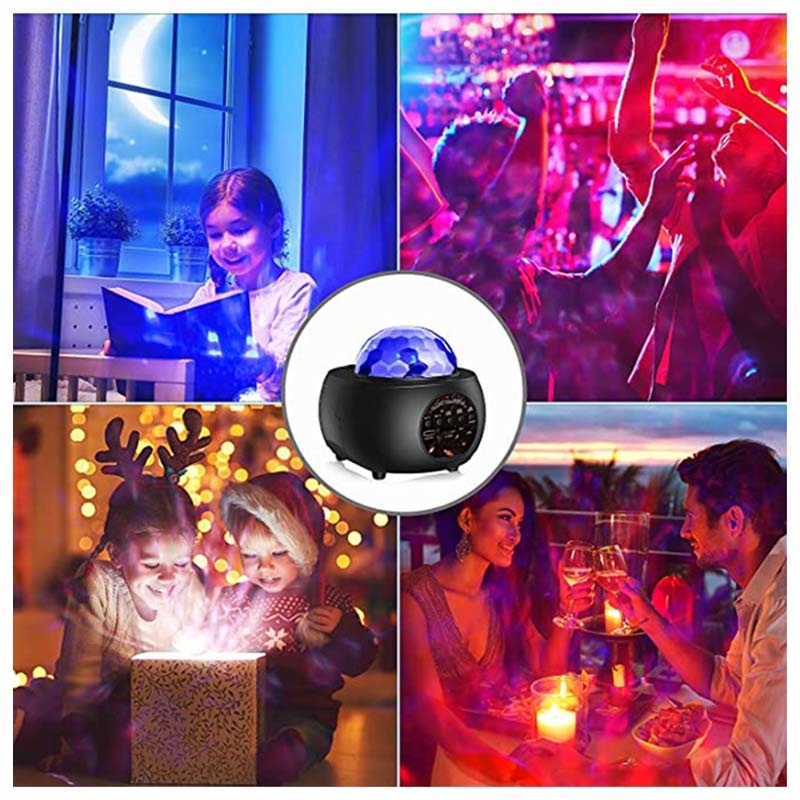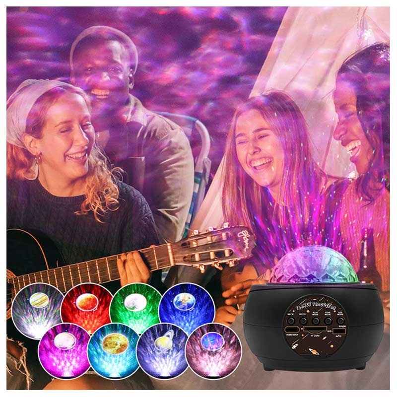 Dette Ocean Wave stjernelys har 4 forskellige farvebølger og 10 himmellegemers farver, som danner adskillige kombinationer og skaber en romantisk og spændende atmosfære til din aften. Du kan nemt skifte tilstanden på lyset, musikken, lydstyrken eller lysstyrken via fjernbetjeningen. Denne lampe har en Bluetooth-højttaler der egner sig til fødselsdage, fester, bryllupper, værelsesdekoration og rejser. Den skaber en smuk og klar, stjerneformet atmosfære til dig eller dit barn. De mange farver og lystilstande lader dig vælge det du bedst kan lide og justere den efter egne behov.