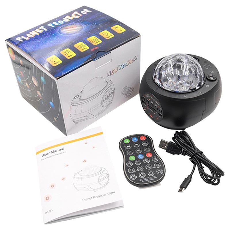 - LED-lys: 4 basale farver (rød, grøn, blå, hvid) og 10 himmellegemer (Merkur, Venus, Jorden, Mars, Jupiter, Saturn, Uranus, Neptun, Pluto og Månen)