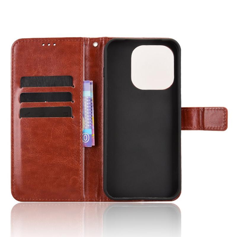 Giv din nye OnePlus 15 et raffineret vintage-look, mens du erstatter din daglige pung. Ydersiden i polyuretan med Crazy Horse-tekstur kombineres med en stødabsorberende TPU-skal for at beskytte mod fald og ridser, mens smarte lommer holder styr på kort og kontanter.