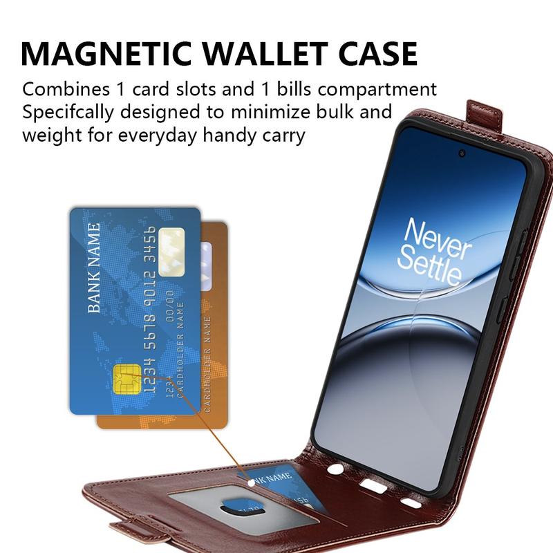 OnePlus Nord 4 Vertikal Flip Cover med Kortholder - Brun