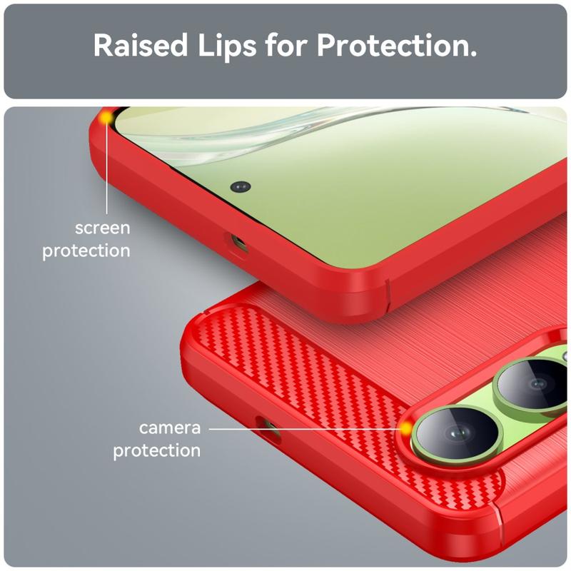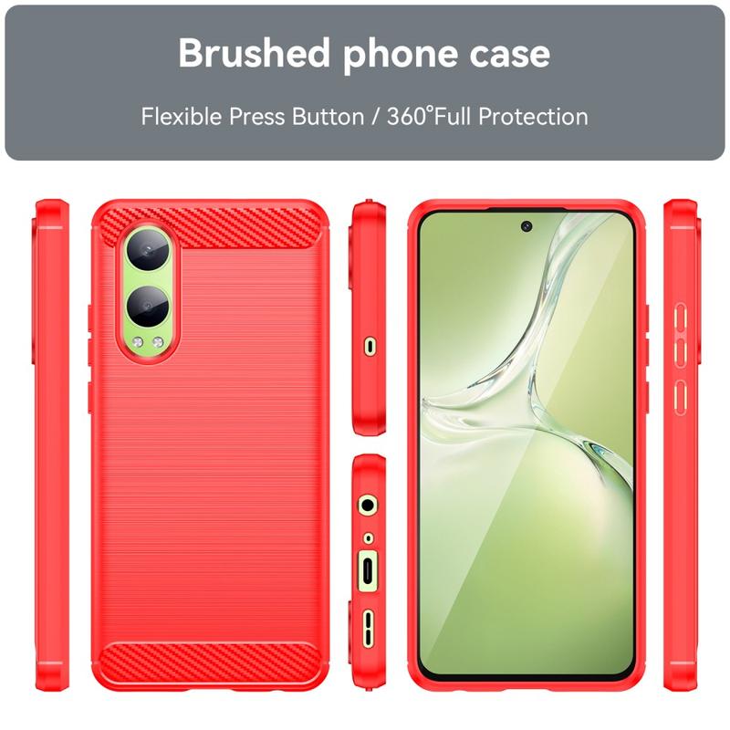 OnePlus Nord CE4 Lite/Oppo K12x Børstet TPU Cover - Karbonfiber - Rød