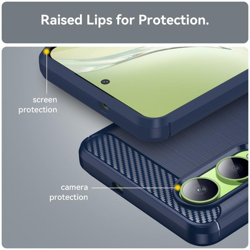 OnePlus Nord CE4 Lite/Oppo K12x Børstet TPU Cover - Karbonfiber - Blå