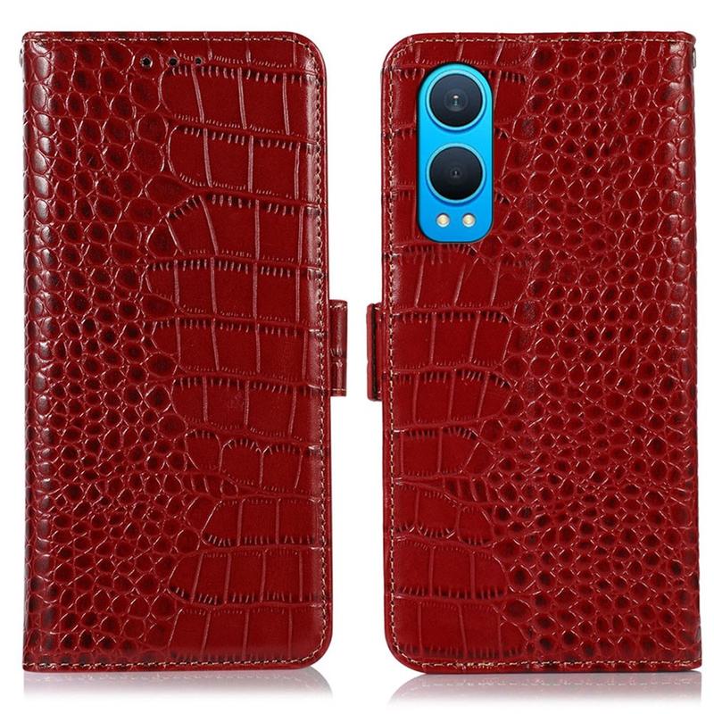 OnePlus Nord CE4 Lite/Oppo K12x Crocodile Series Læderpung med RFID - Brun