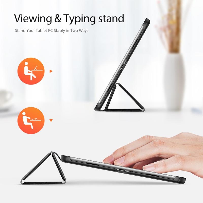 Dette tilbehør holder enheden sikker mod skader og ridser, mens den udvider funktionaliteten. Front flappen kan foldes til et stativ i tre tilstande, hvilket gør det nemmere at skrive eller se film og videoer helt håndfrit.