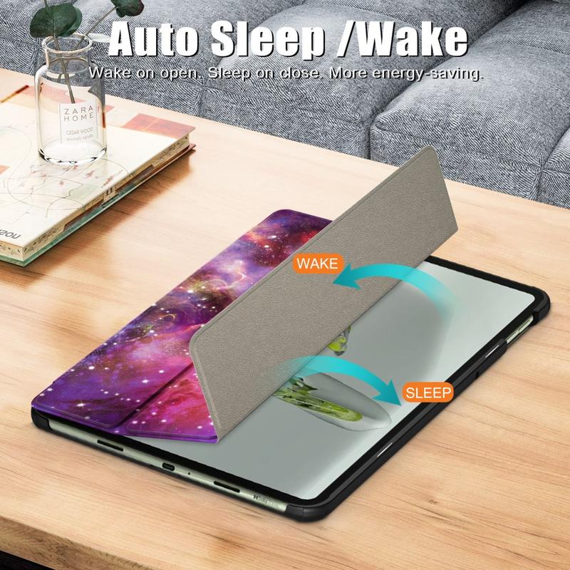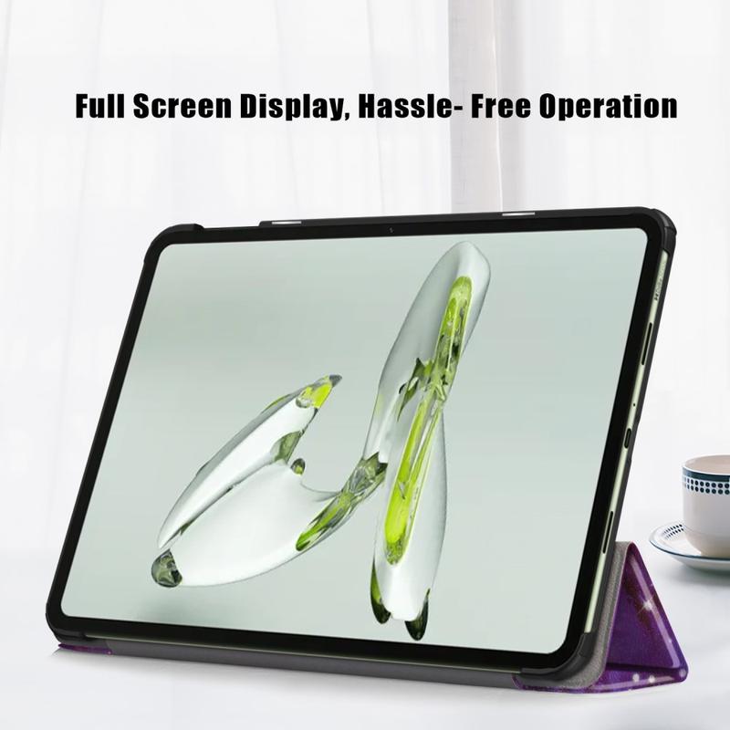 Uanset om du ser en video eller tegner med din stylus på din OnePlus Pad Go, Oppo Pad Air2, holder folio coveret den i din ideelle vinkel, og giver en mere komfortabel og produktiv oplevelse. Den smarte dvale/vågn-op funktion tænder og slukker automatisk for skærmen, når du åbner og lukker klappen.