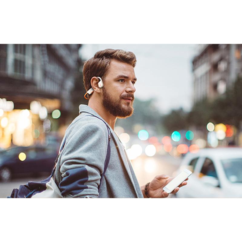 Air Conduction-teknologi gør det muligt at overføre lyd direkte til dit øre ved at lede den gennem tindingebenene. Det betyder, at du vil opleve lyd på en helt ny måde - klar, afbalanceret og ekstremt omsluttende. Det er ideelt for aktive mennesker, som gerne vil være i kontakt med omgivelserne, mens de lytter til deres yndlingsmusik.