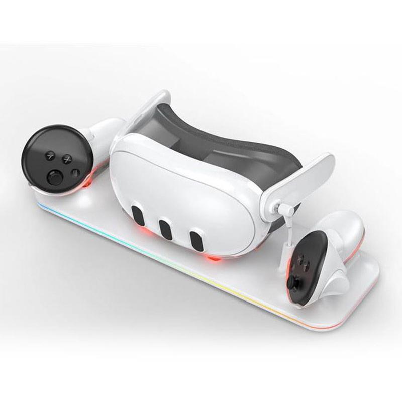 Opladningsstation til Meta Quest 3 VR-headset og dobbelt controller-opladningsdock - hurtig opladning, sikker placering