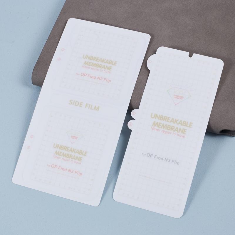 Beskyt den ydre skærm og bagsiden af din dyrebare Oppo Find N3 Flip med dette full cover PET beskyttelsessæt!