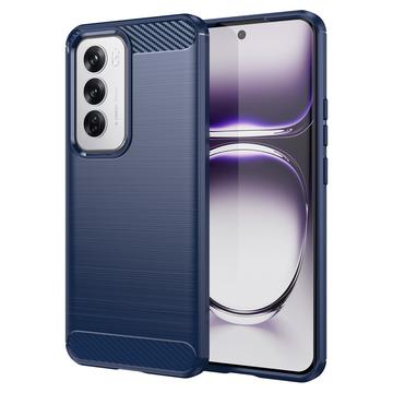 Oppo Reno12 Børstet TPU Cover - Karbonfiber - Blå