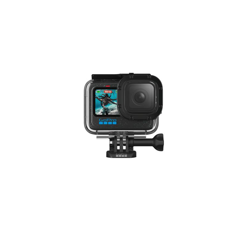 Tag dit kamera med dybere ned og beskyt det bedre med GoPro-beskyttelseskabinet, der er udviklet til seriøse vandsport, dykning og ekstreme miljøer. Selvom kompatible GoPro-modeller allerede er robuste, tilføjer dette kabinet et ekstra lag beskyttelse mod mudder, snavs, flyvende snavs og stød samt pålidelig vandtæthed ned til 60 m til dykning i dybt vand. En flad glaslinse hjælper med at opretholde skarpe billeder i høj kvalitet over og under vandet, og frontskærmen forbliver synlig, så du hurtigt kan kontrollere billedrammen og indstillingerne. Til optagelser over vandet forbedrer den medfølgende skeletbagdør lydoptagelsen og giver lettere adgang til touchskærmen – perfekt, når du ønsker beskyttelse uden dæmpet lyd.
