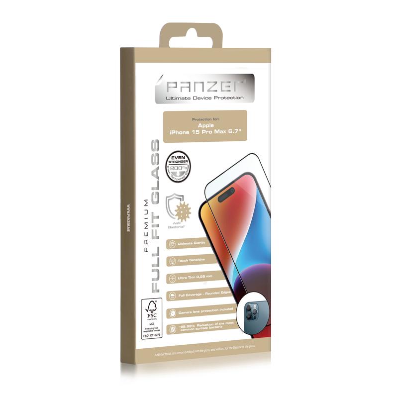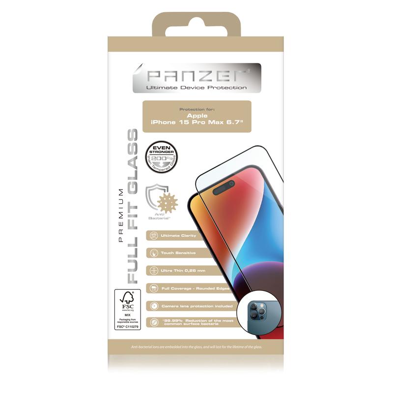 Panzer Premium Full-Fit Hærdet Glas Skærmbeskyttelse til iPhone 15 Pro Max