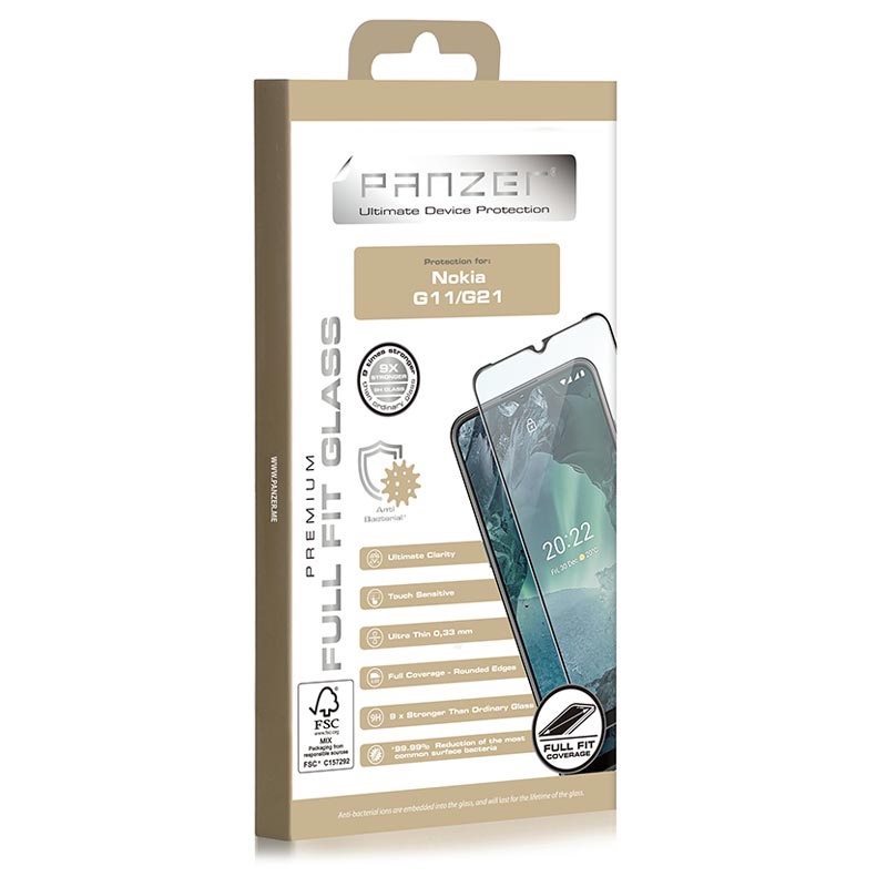 Hold skærmen på din Nokia G11, Nokia G21 fri for ridser med en Panzer Premium Full-Fit skærmbeskytter.
