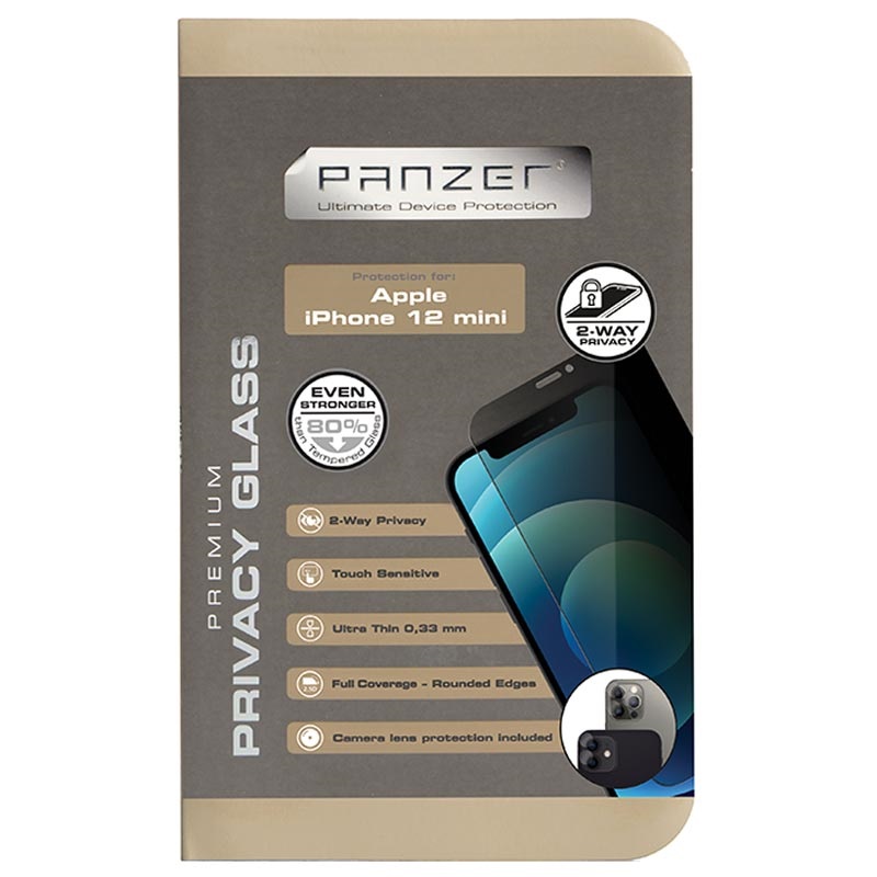 Panzer Premium Full-Fit Privacy Skærmbeskyttelse til iPhone 12 Mini - 9H, 0.6mm