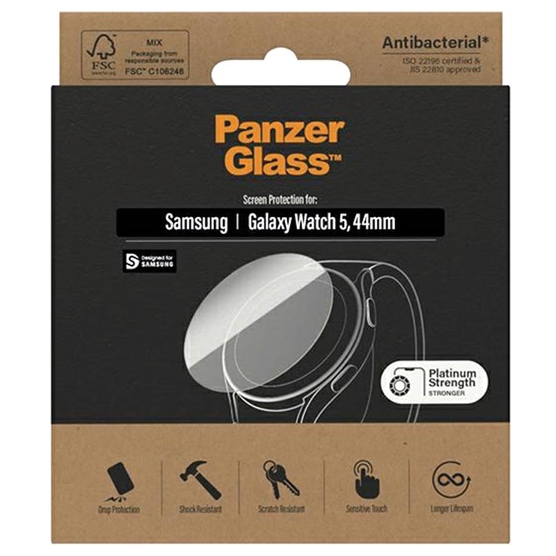 Beskyt den mest skrøbelige del af dit Samsung Galaxy Watch5 med en skærmbeskytter med platin-styrke fra PanzerGlass. Den er yderst modstandsdygtig over for ridser og skader, men er også ultra-tynd og krystalklar. Takket være den specielle oleofobiske og antibakterielle belægning, vil dit Samsung Galaxy Watch5 være fri for bakterier, snavs og fingeraftryk.