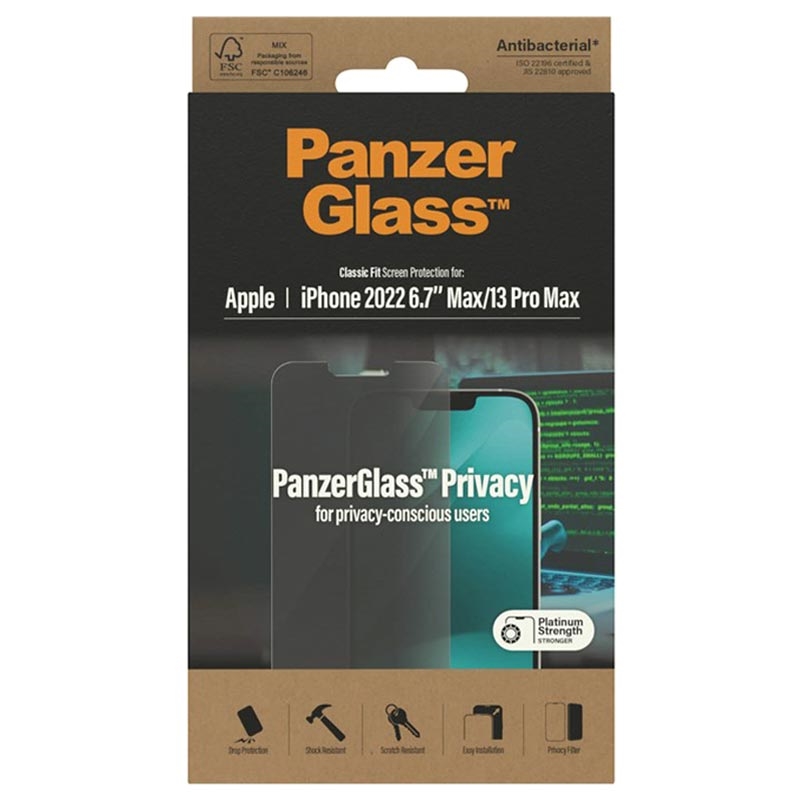 PanzerGlass Classic Fit Privacy AntiBacterial Skærmbeskyttelse til iPhone 13 Pro Max, iPhone 14 Plus
