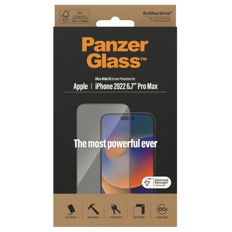 PanzerGlass Ultra-Wide Fit AntiBacterial Skærmbeskyttelse til iPhone 14 Pro Max