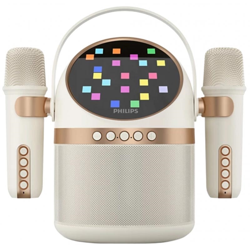 Philips TAS2509WT/00 bærbar Bluetooth-karaoke-højttaler - 5 W RMS (10 W maks.), 2 trådløse mikrofoner, LED-lys, 15 timers batteritid, USB-C