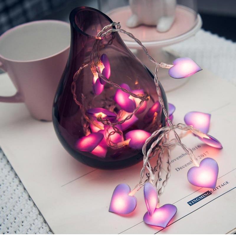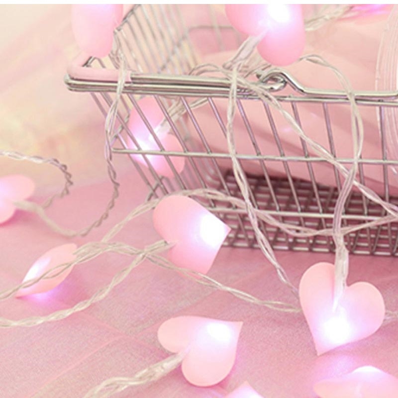 3 m hjerteformede LED-lyskæder - 20-lampers batterikæde, pink flash-tilstand og fleksibel kobbertråd
