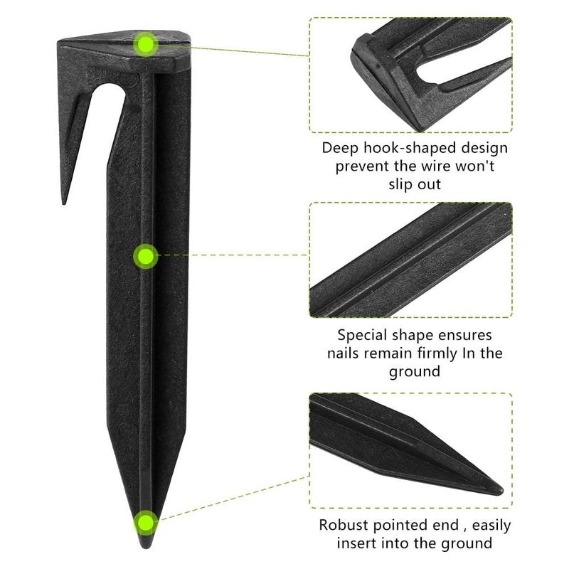 - Sikker at bruge: I modsætning til metalklammer korroderer disse plastpløkker ikke, hvilket forhindrer potentielle skader på nedgravede ledninger og sikrer sikkerheden.
