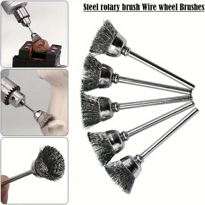 Giv alt roterende værktøj i dit værksted nyt liv med dette alsidige stålbørstesæt med 12 dele. Sættet indeholder fire penformede, fire skålformede og fire T-formede børster, hver med et standard 3mm skaft, der kan sættes direkte på miniboremaskiner, elektriske slibemaskiner og roterende hobbyværktøj. Uanset om du skal fjerne afskallet maling fra gelændere, polere svejsesømme på rustfrit stål eller fjerne kulstofaflejringer fra motordele, bider børsterne af højstyrkestål sig gennem snavset uden at flænse det uædle metal.