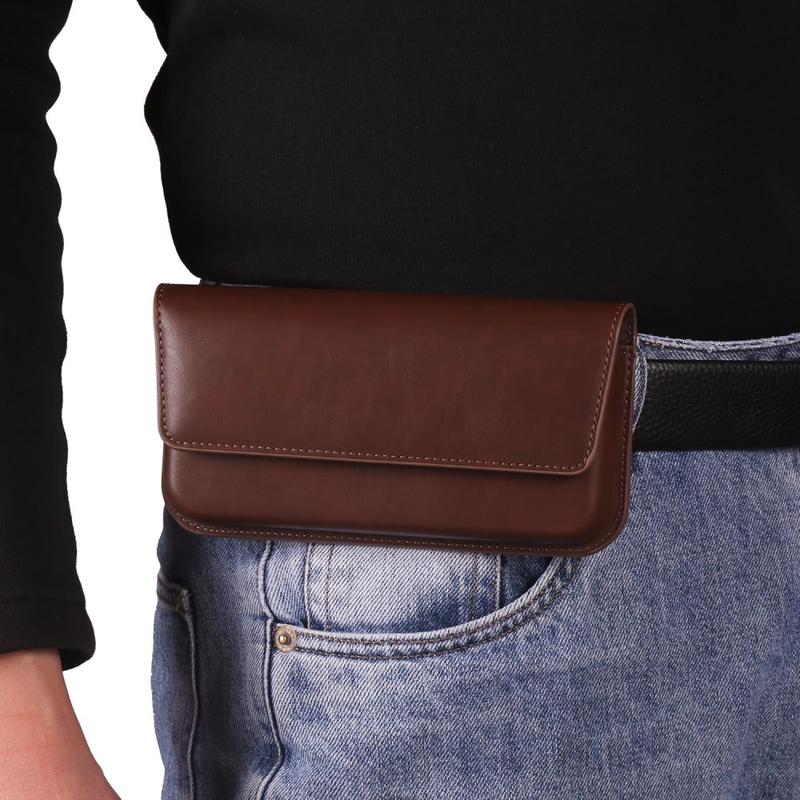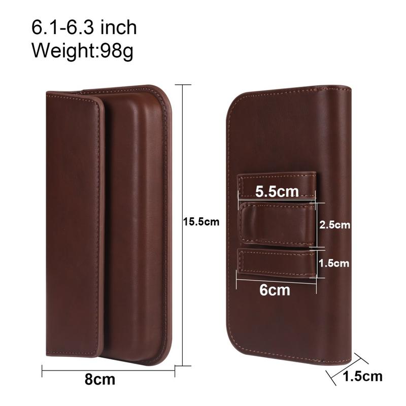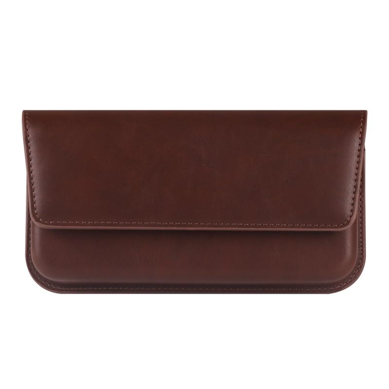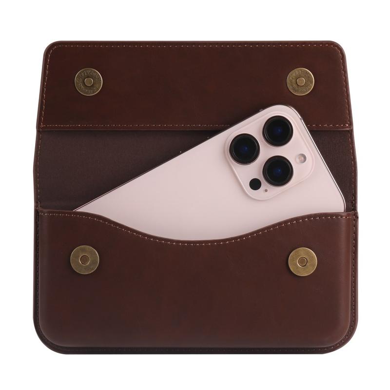 Premium universelt vandret hylster i læder med dobbelt magnetisk lukning - 6.7"-6.9" - Brun