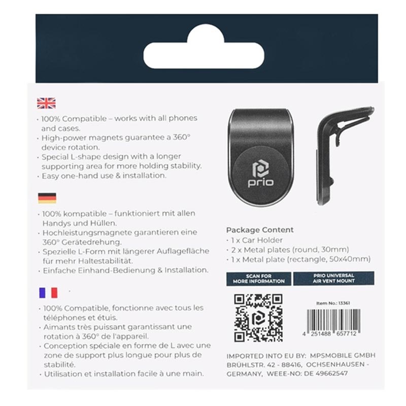 Prio L-Shape Universal Magnetisk Mobilholder til Luftkanal til Smartphones