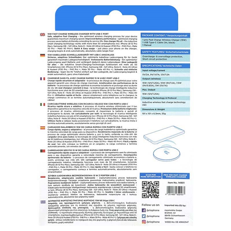 Oplad din Qi-kompatible smartphone hurtigt og nemt med en Prio trådløs