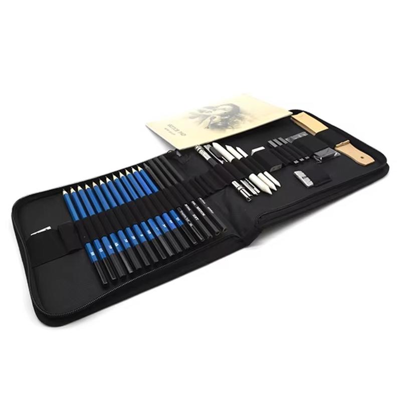 Løft dine kunstneriske bestræbelser med dette professionelle skitse- og tegneblyantsæt med 35 dele. Dette alt-i-et-sæt er designet til både spirende kunstnere og erfarne fagfolk og indeholder et alsidigt udvalg af værktøjer til at bringe dine visioner til live. Uanset om du skitserer, skygger eller laver detaljer, sikrer dette sæt præcision og kvalitet i hvert eneste strøg.
