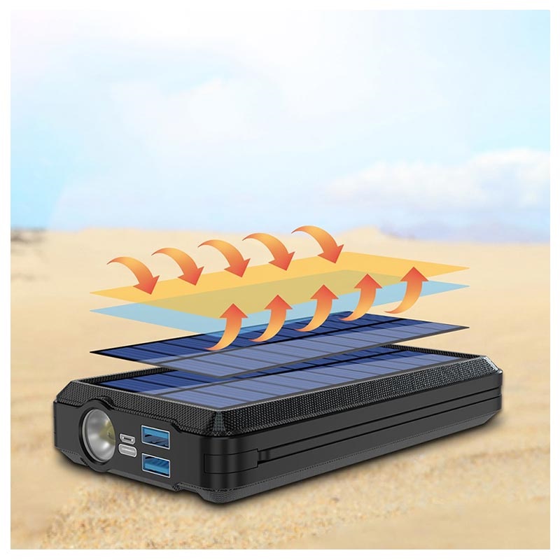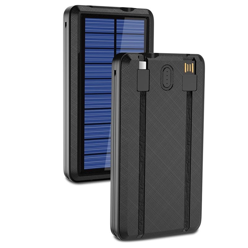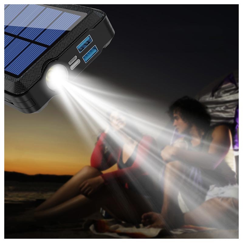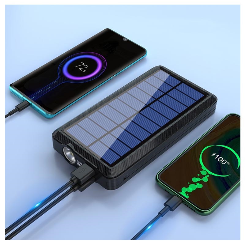 Psooo PS-158 Trådløs Solcelle Powerbank med Lommelygte - USB-C, Lightning, MicroUSB, USB-A, Qi