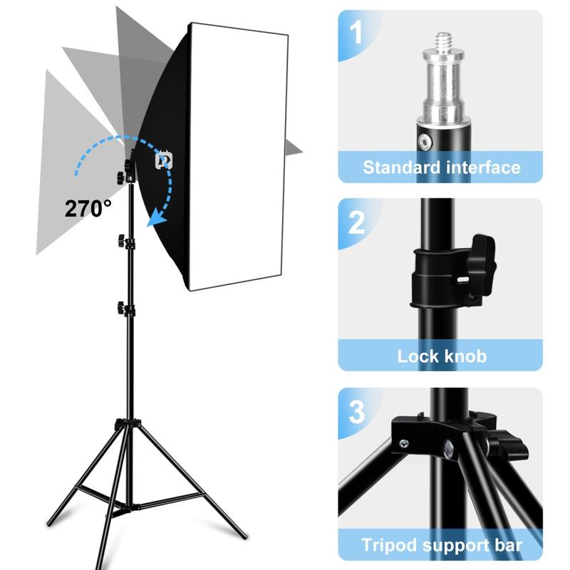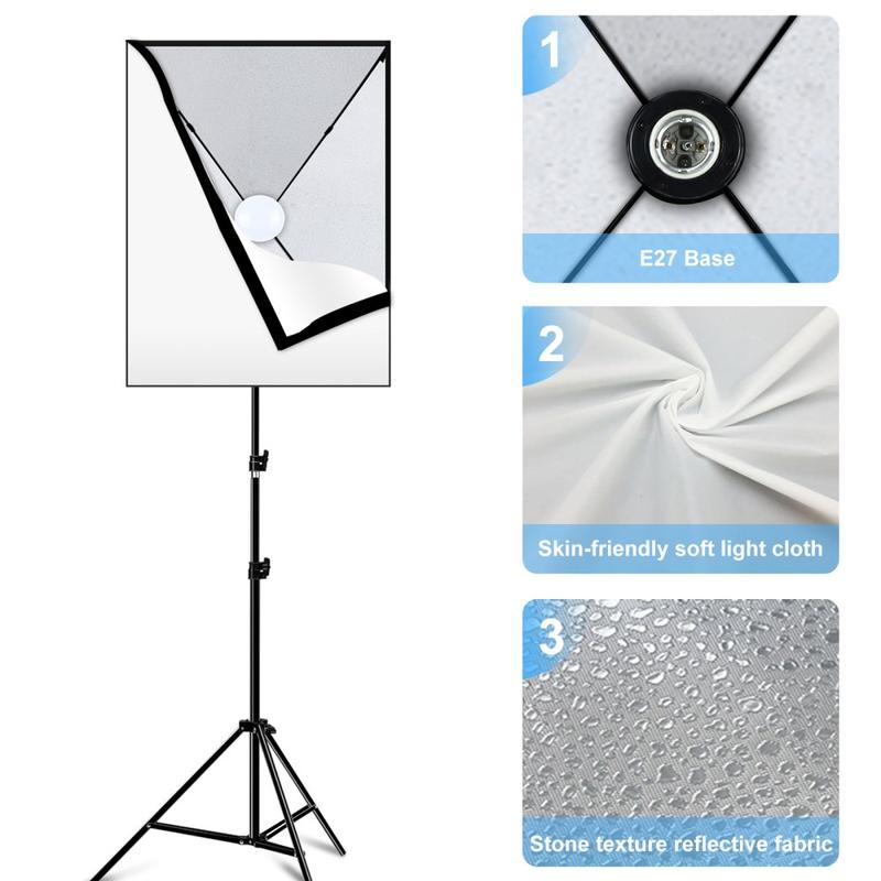 PULUZ Fotolys Stativ+50x70cm Fotostudio Softbox+E27 LED Pære - EU-stik