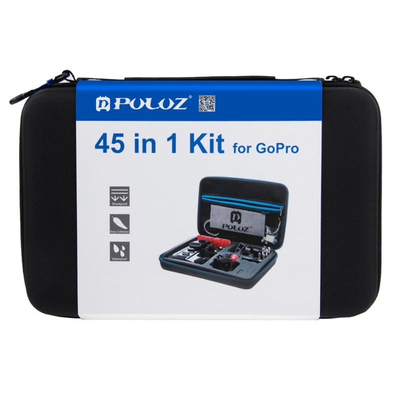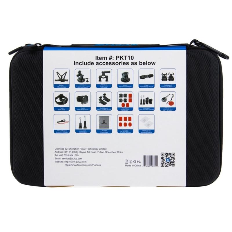 PULUZ PKT10 45-i-1 tilbehørssæt til actionkamera - stor opbevaringskasse, bryst- og hovedbeslag, flydende håndtagssæt til GoPro