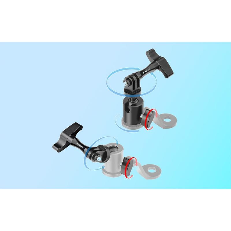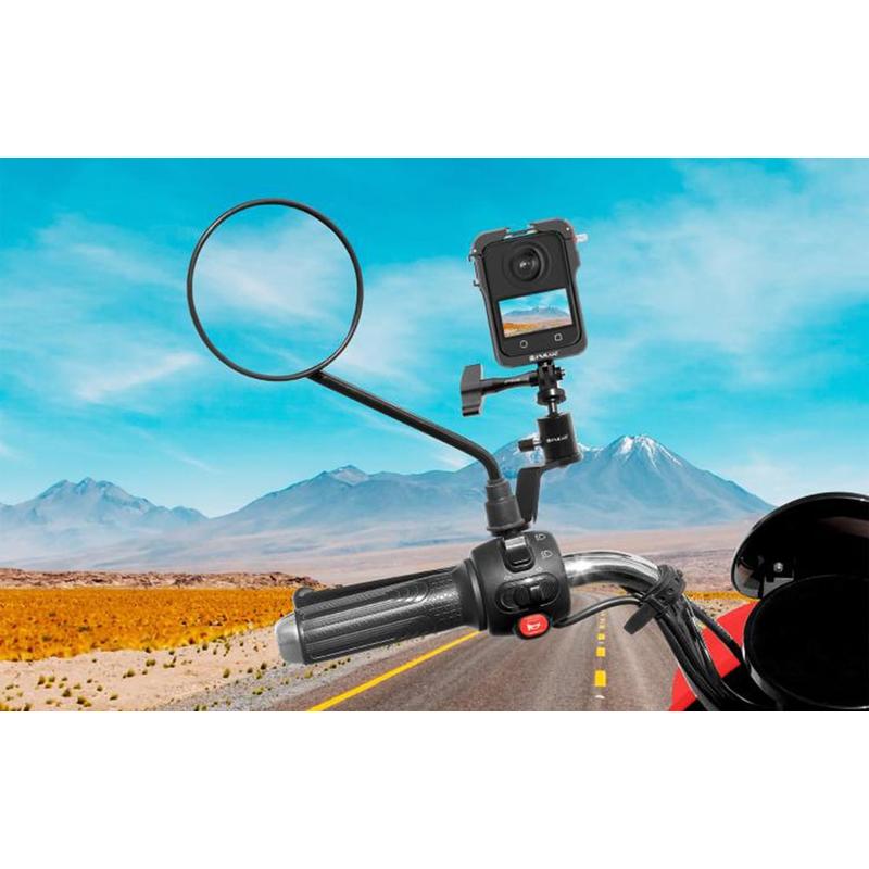 Puluz PU1056B Aluminiumsmonteret kamera til motorcykelbakspejl - 360 graders rotation, 1/4" gevind + GoPro-montering, op til 2 kg belastning, passer til 10 mm spejlbolte