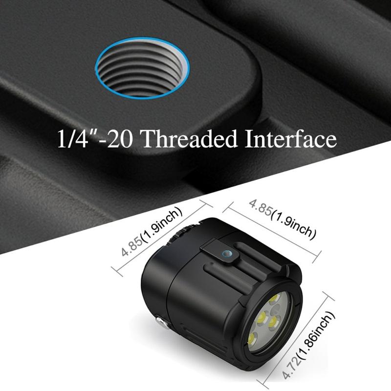 Den er bygget med et holdbart aluminiumskabinet og er vandtæt ned til 40m (ingen ekstra husning kræves), så den er klar til brug under vand, samtidig med at den er lille nok til at kunne monteres på hjelme, cykelrigge, håndholdte greb, droner eller kamerabur. Med flere lysstyrketilstande plus SOS kan du hurtigt tilpasse dig forskellige scener og forhold.