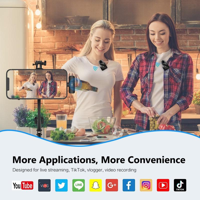 Opsætningen med to mikrofoner er især nyttig, når to talere skal optages på samme tid, hvilket gør det ideelt til dialogbaserede videoer, interviews, podcasts, onlineundervisning og fælles indholdsskabelse. Lav latenstid hjælper med at holde lydoptagelsen jævn og naturlig, mens den indbyggede ENC-funktion reducerer baggrundsstøj for klarere tale i hverdagsmiljøer. Funktioner som Bluetooth-kompatibel tilstand, understøttelse af smart mute og forbedring af rumklang tilføjer også ekstra fleksibilitet til mere kreativ lydbrug.