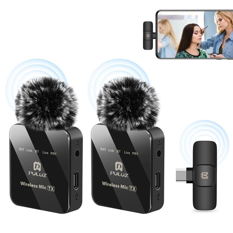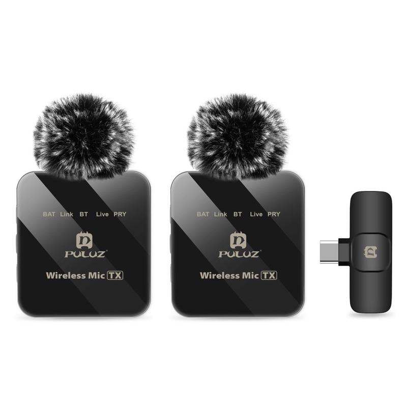 Puluz PU648B trådløs dobbelt lavaliermikrofon med Type-C-modtager, ENC-støjreduktion og 48 kHz lyd
