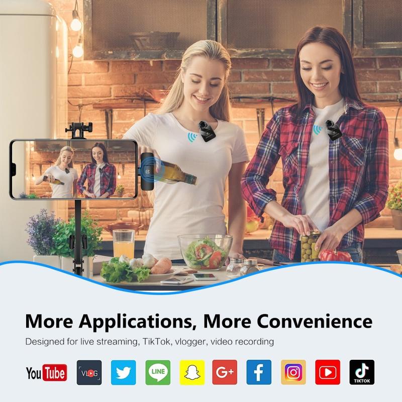 Designet med to mikrofoner gør dette system særligt nyttigt, når to talere skal optages på samme tid uden at dele én mikrofon. Type-C-modtageren understøtter praktisk brug med kompatible smartphones og enheder, mens forbindelsen med lav latenstid hjælper med at holde lydoptagelsen jævn og naturlig. Indbyggede funktioner såsom Bluetooth-kompatibel tilstand, understøttelse af smart mute og forbedring af rumklang tilføjer ekstra kreativ fleksibilitet for brugere, der ønsker mere end grundlæggende stemmeoptagelse.