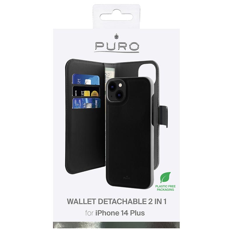 Med Puro 2-i-1 iPhone 14 Plus Magnetisk Pung Taske i sort får du en stilfuld og funktionel løsning, der beskytter din telefon og holder dine vigtigste ejendele lige ved hånden. Dette er den perfekte taske for dig, der ønsker at kombinere beskyttelse, stil og praktiske funktioner i én enhed.