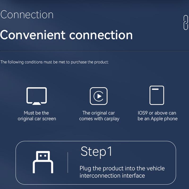 - Bred kompatibilitet: Denne adapter er kompatibel med fabriksinstallerede CarPlay-systemer og understøtter både iOS 9 og nyere smartphones, hvilket sikrer bred kompatibilitet.