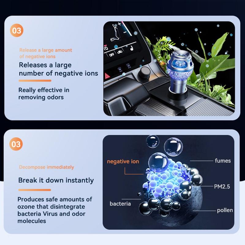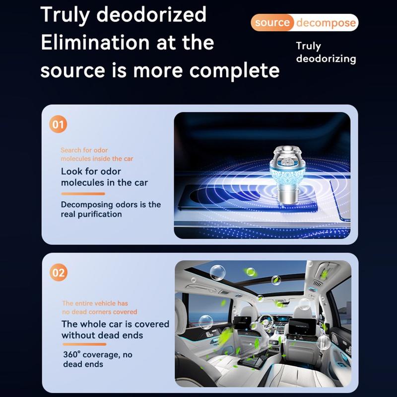 I modsætning til almindelige bilfriskere, der blot dækker over uønskede lugte, er denne renser designet til at tackle lugtmolekylerne direkte. Dens 720° rensningsdækning sikrer en mere jævn luftbehandling i hele kabinen og hjælper med at friske luften op omkring føreren, passagererne, sæderne og fodrummet. Kombinationen af højkoncentrerede negative ioner og lavt ozonindhold arbejder sammen om at skabe et mere behageligt miljø i bilen under daglige pendlerture, lange køreture eller tid i trafikken.