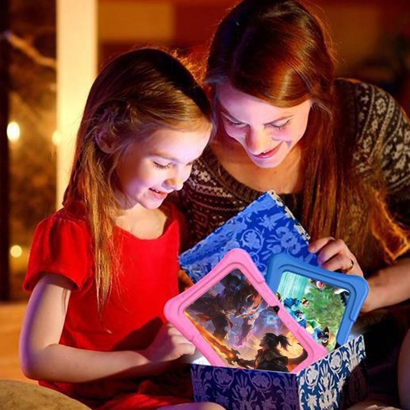 Det børnevenlige beskyttelsesetui beskytter enheden mod fald og stød, mens det integrerede stativ giver mulighed for behagelig håndfri visning af tegnefilm, læringsvideoer eller videosamtaler. Med dobbeltkameraer og indbygget WiFi-forbindelse kan børn tage fotos, optage videoer og holde kontakten med familien gennem enkel videochat.