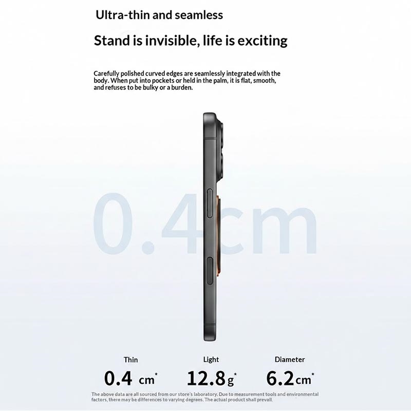 Den ultratynde Q11 tri-fold magnetiske ringholder er et slankt telefongreb og -holder designet til fleksibel hverdagsbrug uden at fylde for meget. Med en tredobbelt foldestruktur kan den foldes kompakt sammen, når den ikke er i brug, mens 360°-rotationen gør, at du hurtigt kan justere mellem stående og liggende visning. Den selvklæbende bagside gør monteringen hurtig og sikker, og den indbyggede magnet gør den kompatibel med magnetiske holdere og tilbehør.