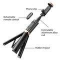 Q12 udtrækkelig selfiestang og stativ med Bluetooth-fjernbetjening - bærbar og stabil telefonholder
