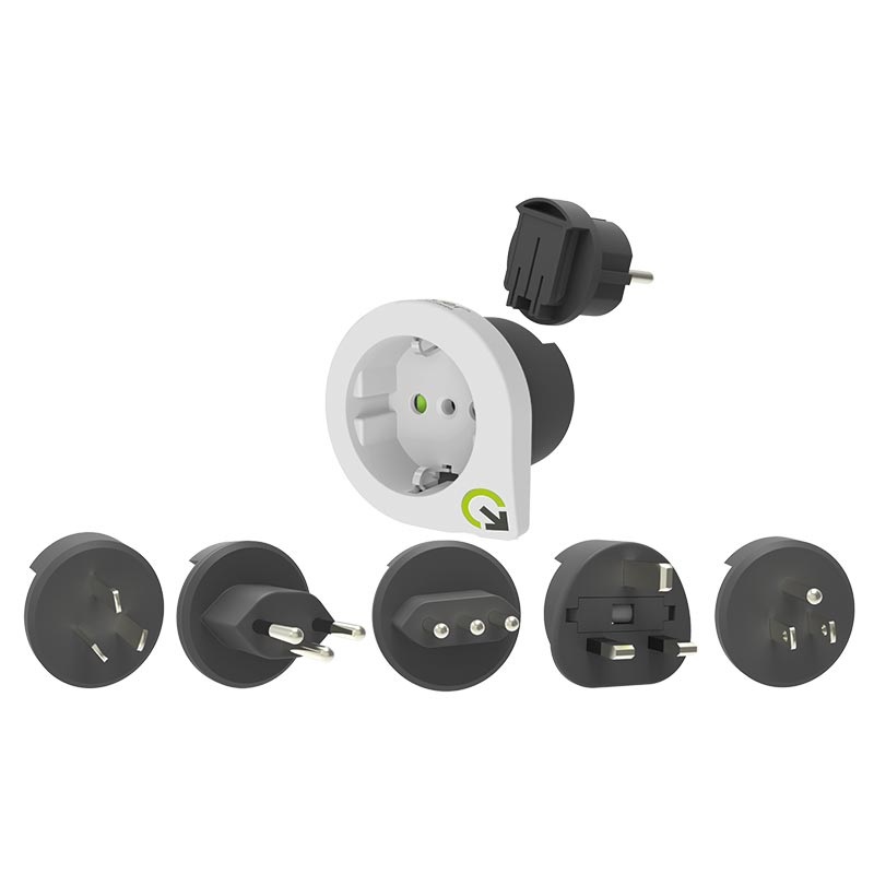 Rejs over hele verden med blot én enkelt eladapter. Q2Power Qdapter er den bedste opladningsløsning til rejsende fra hele verden. Den passer til alle kontinenter, og det eneste du skal gøre er, at skubbe det nødvendige stik ud, som passer til din destination. Oplad dine enheder i over 120 forskellige lande verden over!