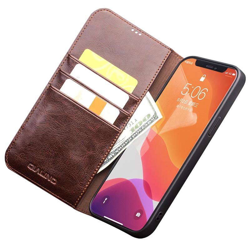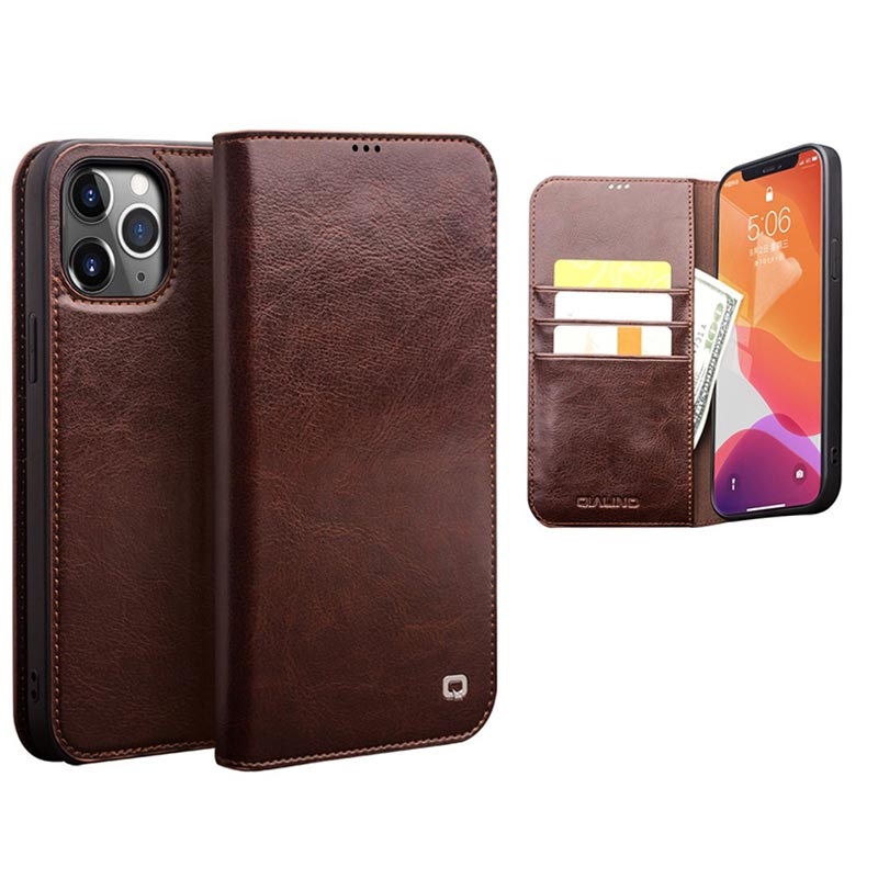Qialino Classic Læderpung til iPhone 12 Pro Max