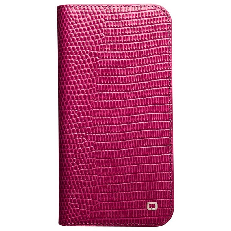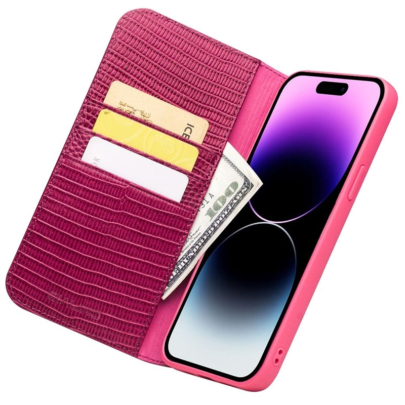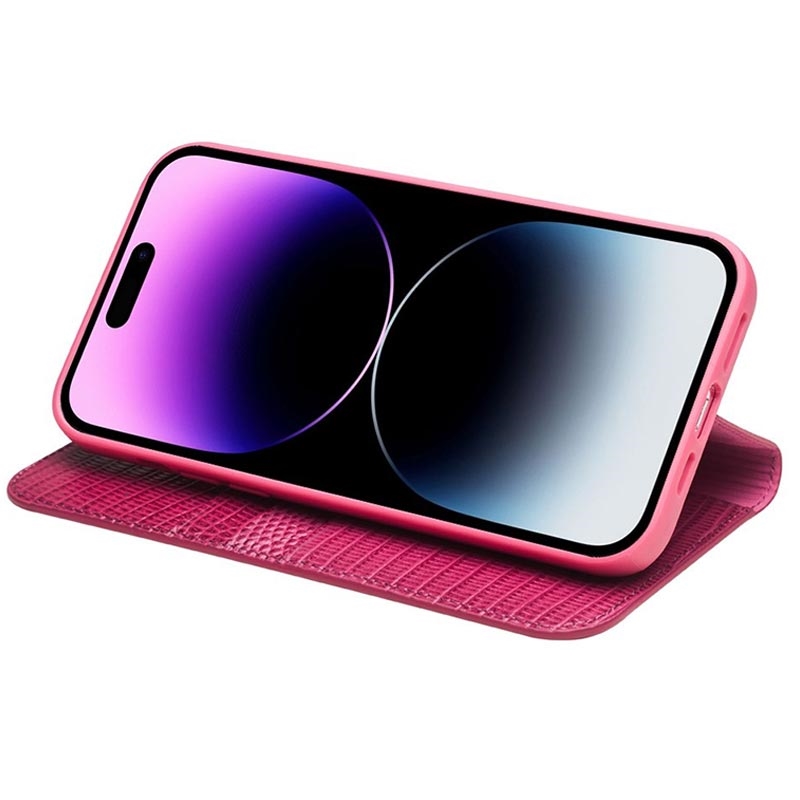 Qialino iPhone 14 Pro Læderpung - Krokodille - Hot Pink