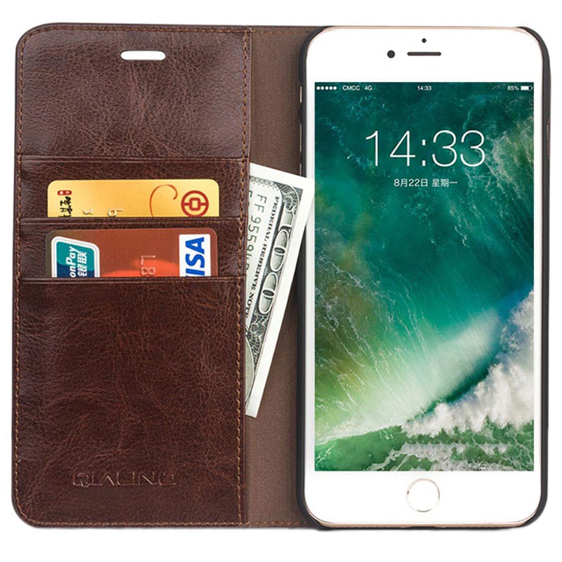 Denne Qialino Classic Læderpung er stilfuld nok til at passe til din iPhone 7 Plus' enestående design og beskytter den og holder den fri for skader.