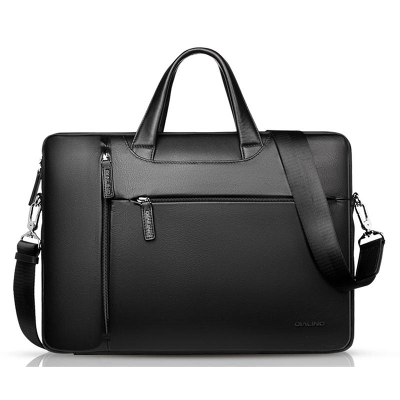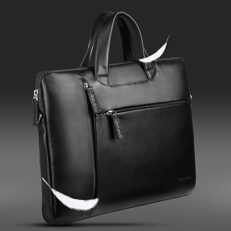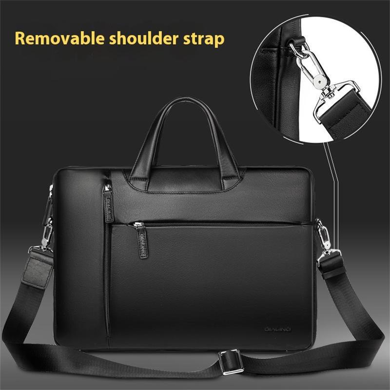 Qialino Laptop-taske i ægte læder - førsteklasses bæretaske i okselæder med aftagelig rem og beskyttelse i flere rum