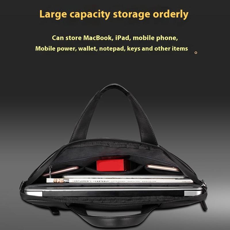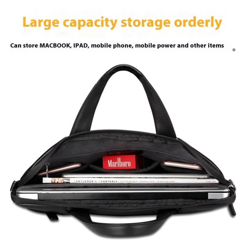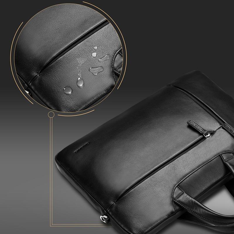 Giv din bærbare computer en førsteklasses behandling med denne Qialino-laptop-taske, der er fremstillet af førsteklasses okselæder, som modstår hverdagens stænk og samtidig ser ubesværet professionel ud. Et plysfor af fleece og perlebomuld beskytter enheder på op til 13 tommer, og med den aftagelige skulderrem kan du skifte mellem at bære tasken på tværs af kroppen og som mappe på få sekunder. Flere indvendige lommer holder styr på telefon, powerbank og notebook, så rejsen bliver strømlinet.