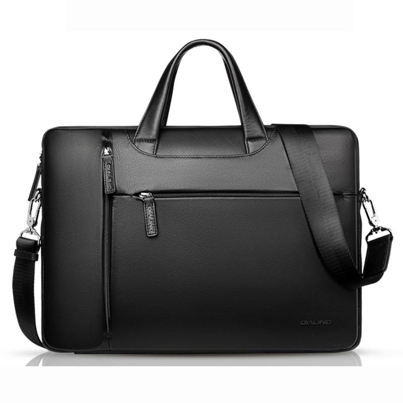 Qialino Laptop-taske i ægte læder - førsteklasses bæretaske i okselæder med aftagelig rem og beskyttelse i flere rum