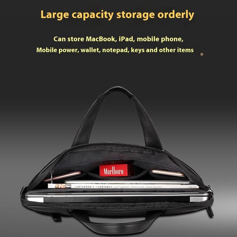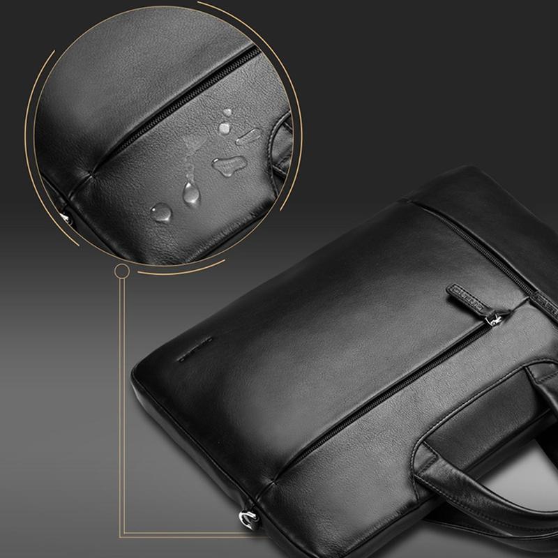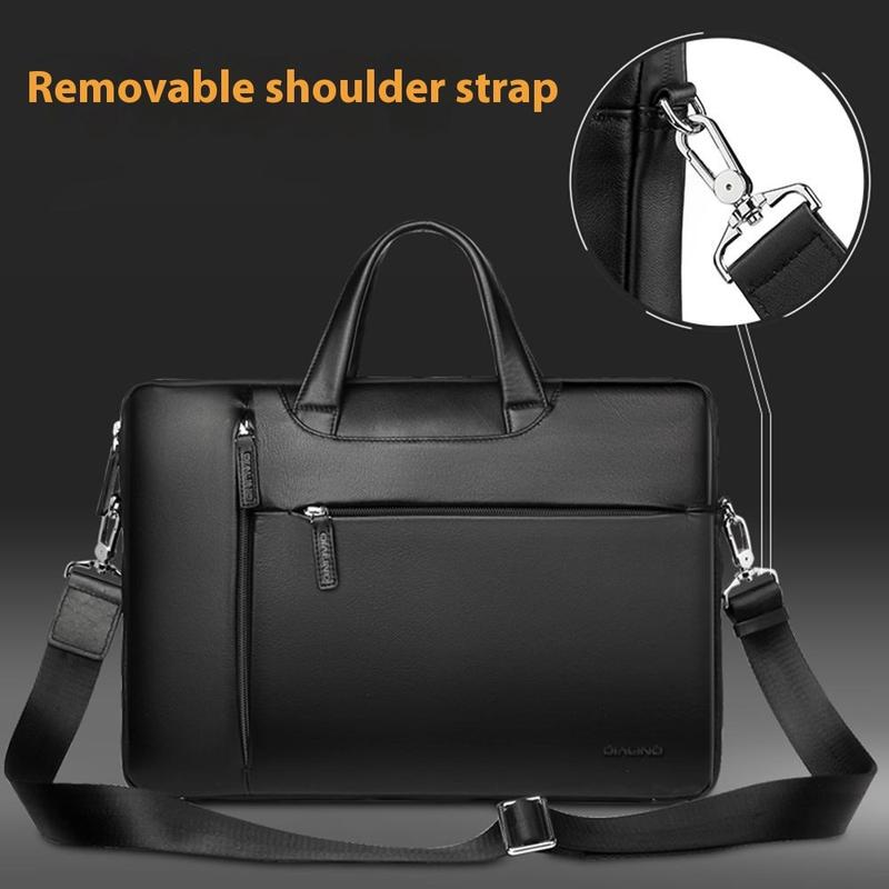 Giv din bærbare computer en førsteklasses behandling med denne Qialino-laptop-taske, der er fremstillet af førsteklasses okselæder, som modstår hverdagens stænk og samtidig ser ubesværet professionel ud. Et plysfor af fleece og perlebomuld beskytter enheder på op til 15 tommer, og den aftagelige skulderrem giver dig mulighed for at skifte mellem at bære tasken på tværs af kroppen og som mappe på få sekunder. Flere indvendige lommer holder styr på telefon, powerbank og notebook, så rejsen bliver strømlinet.